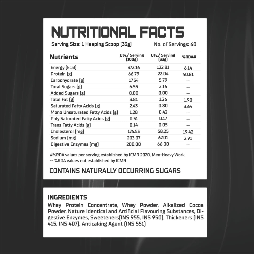 - Each serving delivers 22g of high-quality whey protein, enriched with 66mg of digestive enzymes for optimal absorption and digestion.